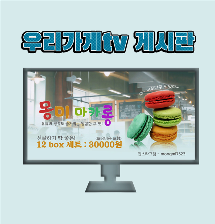 우리가게 tv광고란? - KT인터넷 & TV신규가입 하는 창업고객님들 대상으로 올레tv 실시간 채널(101개)에 노출되는 창업고객을 위한 tv 광고 상품입니다. - 인터넷+TV 신규가입시 홍보영상(3초~15초 사이) 1만회 무료로 제공됩니다. - 우리가게 tv광고는 A타입, B타입중에 고객님이 원하시는 타입으로 선택하시면 됩니다....